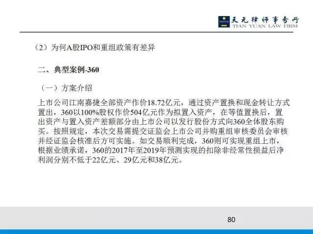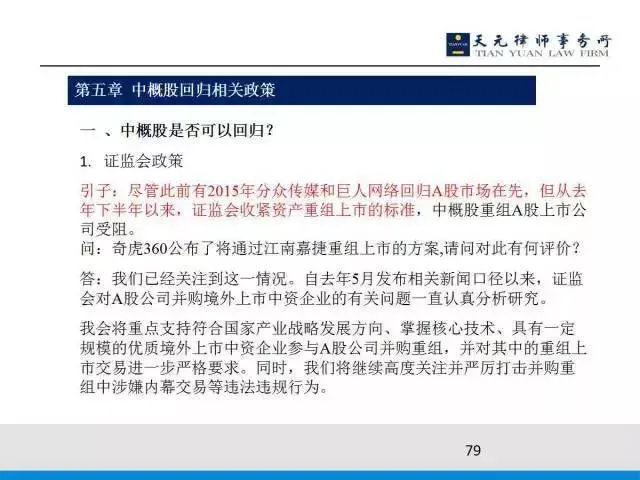 所以对中外股的重组基本是不允许的,但IPO是可行的。360回归也是10月份刚刚公布了借壳上市回归A股的方案,证监会专门为这个问题做了一个回复,回复的理由是什么呢?就是很符合战略方向,掌握核心技术具、有一定规模的优质企业,回归是同意的,但是其他企业就不行。