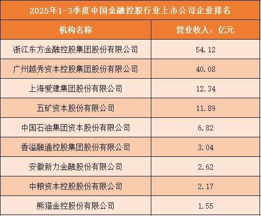 一、2025年1-3季度中国金融控股行业上市公司企业排名分析