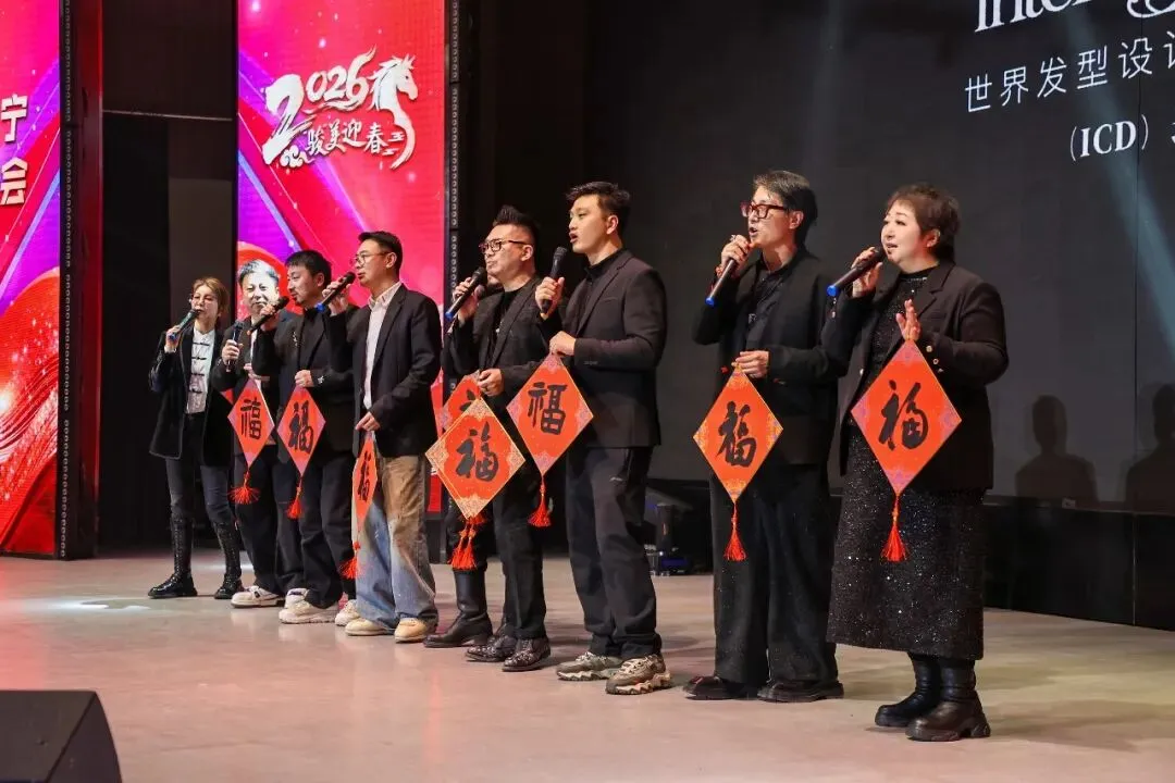 马跃新程开盛景,匠心聚力赴新途!辽宁美业年会暨新春团拜会现场,世界发型设计家协会(ICD)辽宁9名全球会员惊艳亮相,以特色快板书送福传喜,用金曲《奔跑》抒怀明志,将爱岗敬业的坚守融入演绎,为整场年会献上高光时刻,解锁视听新体验,尽显辽宁美业的多元魅力与奋进姿态。