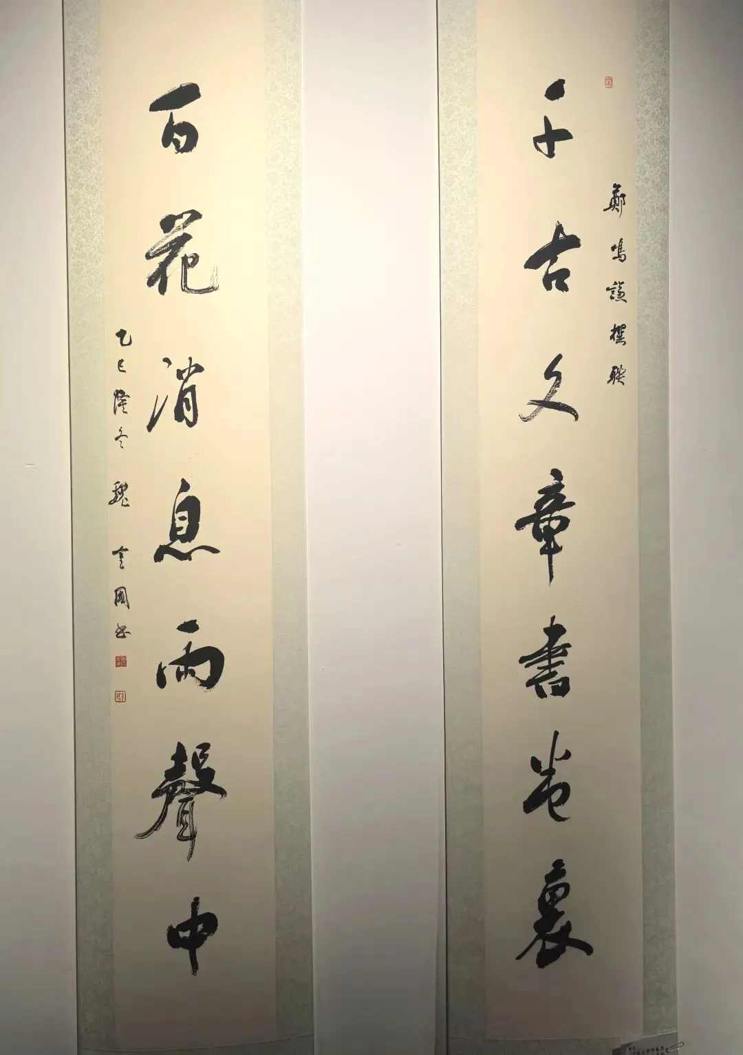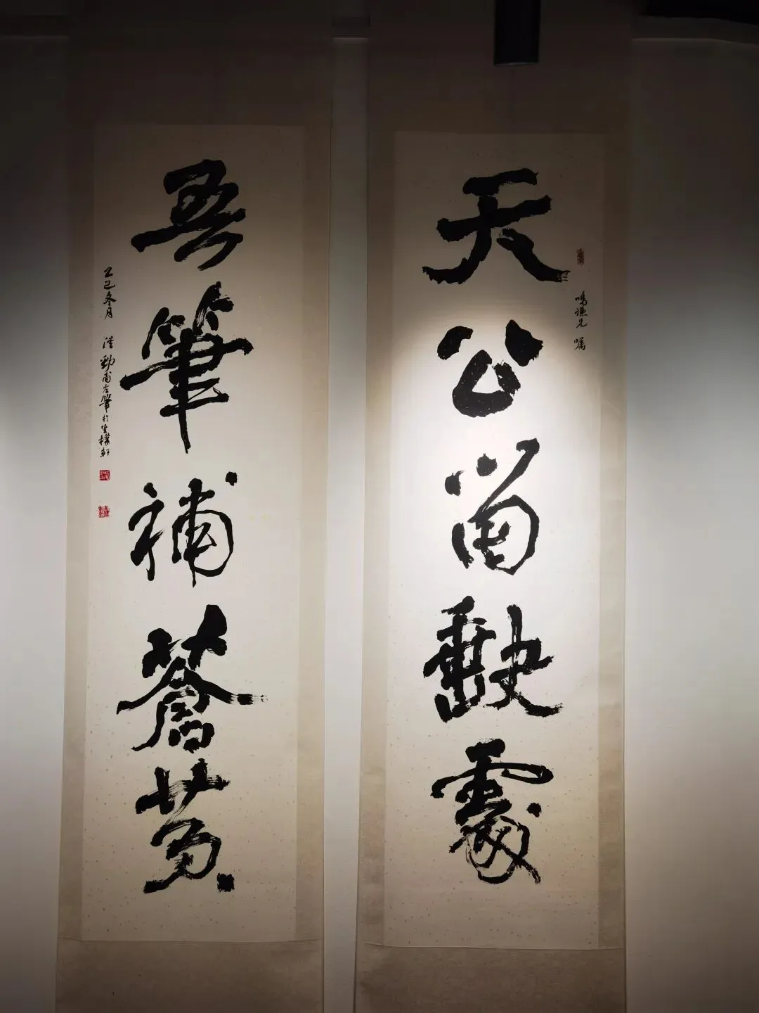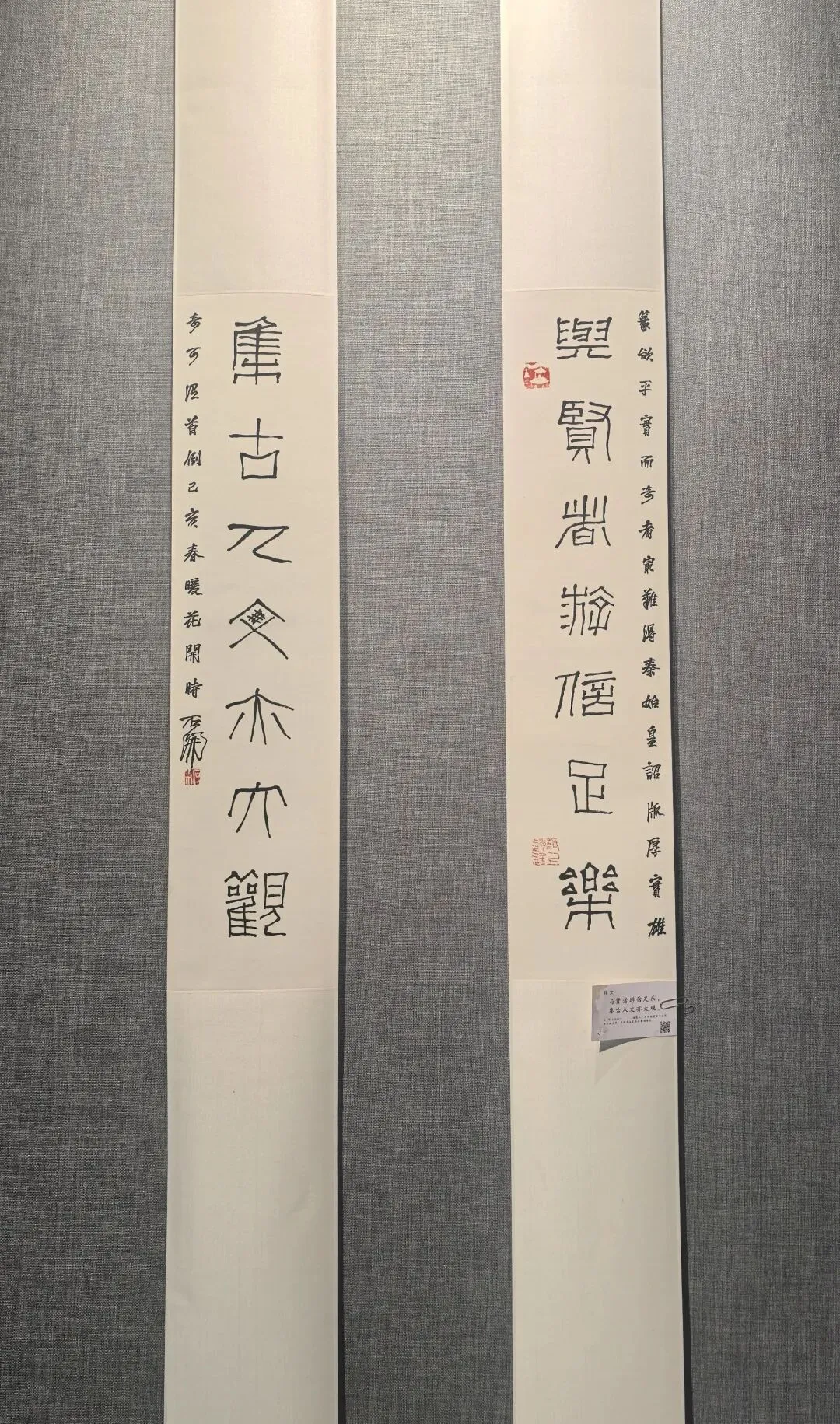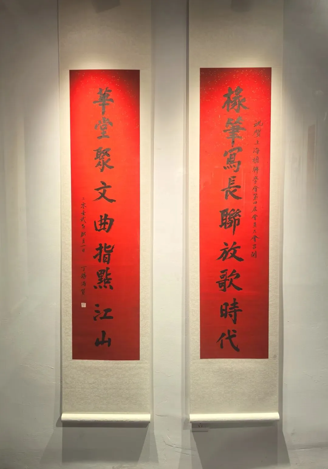 展览聚焦楹联这一独特的中华传统文化形式,展品时间跨度逾八十载,涵盖了自民国先贤至当代青年书法家的作品,系统呈现了不同时期楹联艺术的风格流变与精神传承。展览策划注重艺术对话与脉络梳理,不仅展示了深厚的传统根基与古典意蕴,也体现了在当代语境下的创新探索。特别设置的乡土文脉单元,集中展示了数代天台本土文人墨客的佳作,生动反映了地域文化对艺术创作的滋养。