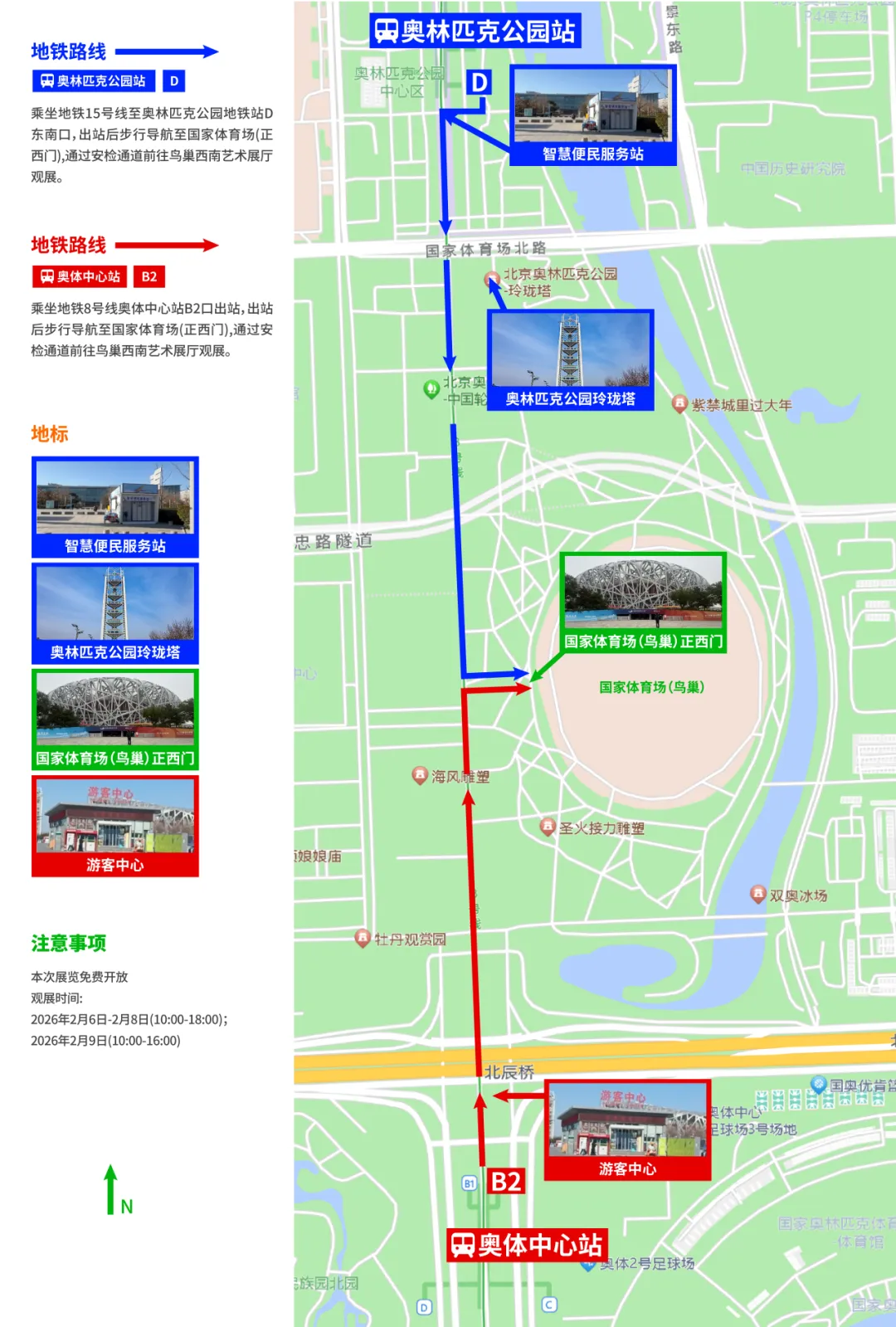 注:2月6日(周五)—2月9日(周一)展览开放期间,鸟巢正西门入口签到处全程开放。