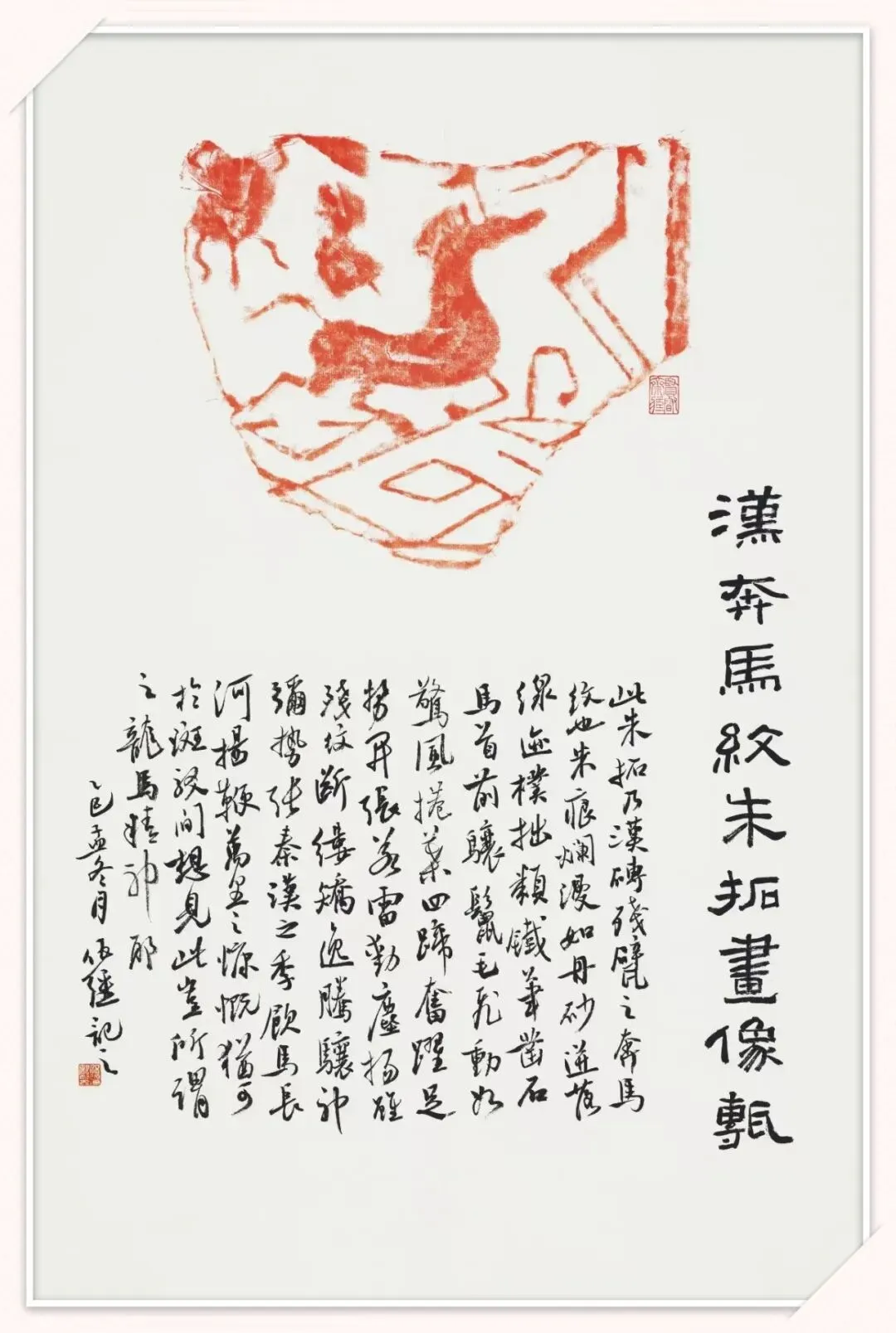 2026年2月1日至2026年3月31日期间,本馆与西安书学院特策划举办“骏驰万里—马纹画像砖拓片题跋展”,展示马纹拓片题跋作品五十余幅。展览以形象勇健的“马”为载体,深入诠释“马”所象征的开拓进取、百折不挠的民族精神品格,连接古代智慧与当代精神,增强文化自信。