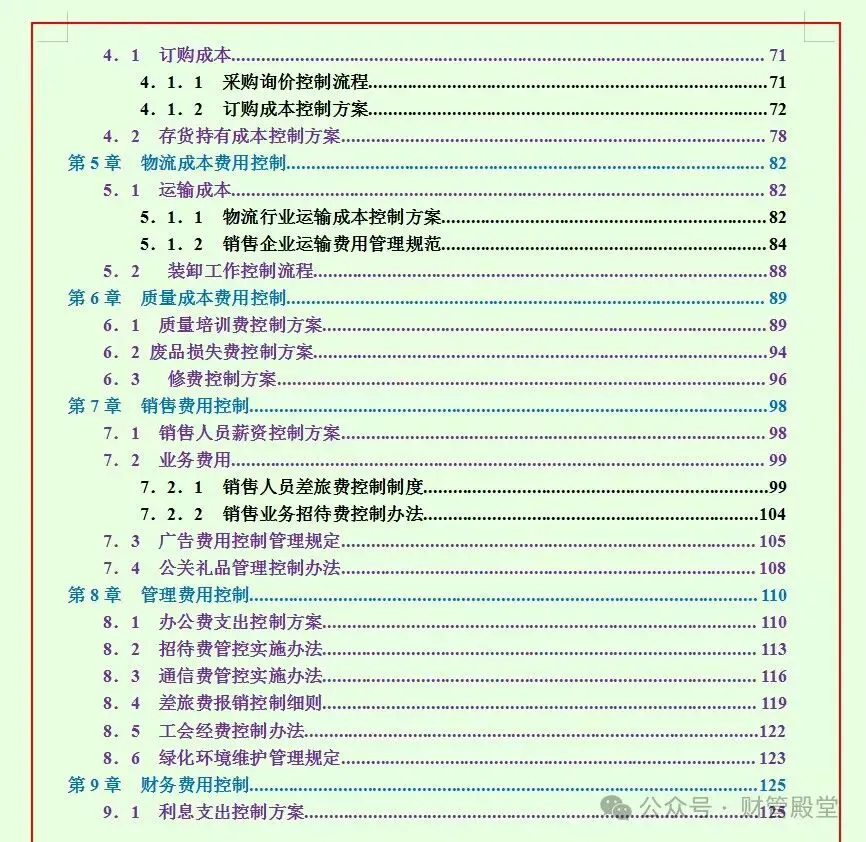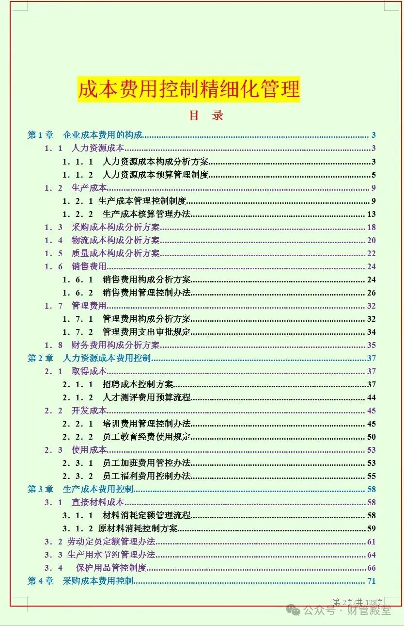 通用版企业成本费用控制精细化管理方案及实施流程,共7.4万字,含生产成本控制流程、采购成本控制流程、销售费用控制流程等,可编辑修改!