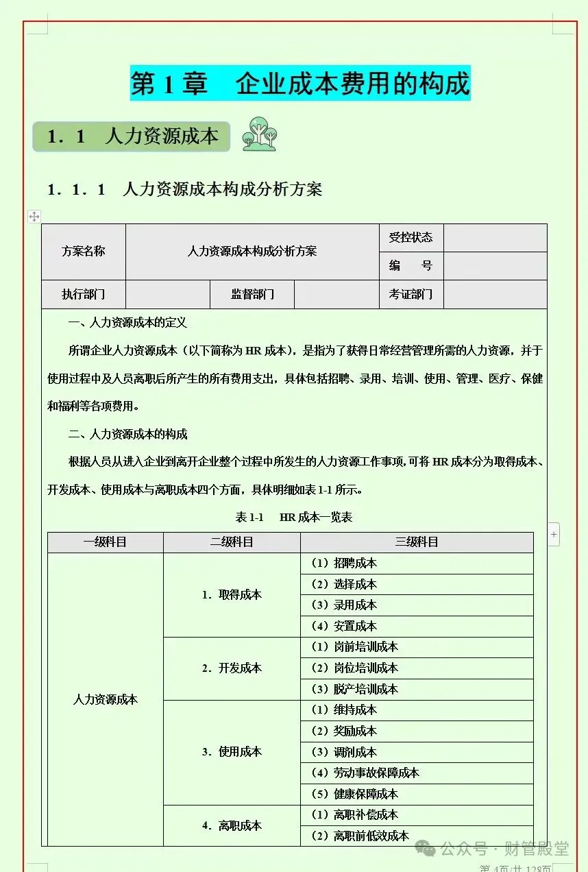 这套成本费用控制管理方案包含了:人力资源成本构成分析方案、人力资源成本预算管理制度、生产成本管理控制制度、生产成本核算管理办法、采购成本构成分析方案、物流成本构成分析方案、销售费用、销售费用构成分析方案、管理费用构成分析方案、财务费用构成分析方案等详细内容。财务管理人员需要参考借鉴的,可以拿去直接编辑修改套用。