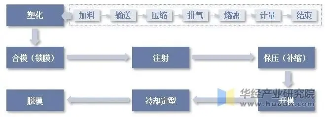 不同类型注塑机工作流程基本相同。各种注塑机完成注射成型的动作程序可能不完全相同,但其成型的基本过程和原理是相同的。流程不同类型的注塑机成型的基本过程是相同的,包括塑化、合模、注射、保压、冷却塑化、制品取出这几个阶段。