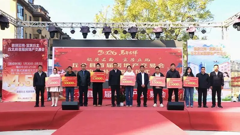 1月30日上午,丘北县桐乐·商业广场人声鼎沸、鼓乐齐鸣,以“旅居云南·宜居丘北”为主题的2026年丘北县首届房地产交易会开幕。副县长张正南出席开幕式并致辞。本届房交会由丘北县住房和城乡建设局主办,旨在搭建政企联动的一站式购房平台,集中释放惠民政策,促进房地产市场平稳健康发展,更好满足人民群众的安居需求。