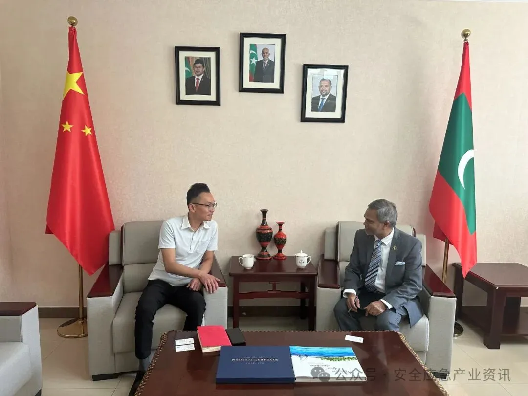 根据应急管理部统一部署,2024中国国际应急管理展览会(以下简称中国应急展)将于11月13-15日举办。中国应急展作为“一带一路”自然灾害防治和应急管理国际合作机制重要工作举措之一,得到了应急部有关负责同志的高度重视,要求切实将中国应急展打造成为对外交流与合作的平台,为落实这一要求,切实增强中国应急展的国际元素,组委会代表于8月28日拜访了马尔代夫共和国驻华大使法泽尔·纳吉布,大使馆二等秘书阿里·哈吉德一同出席会面。