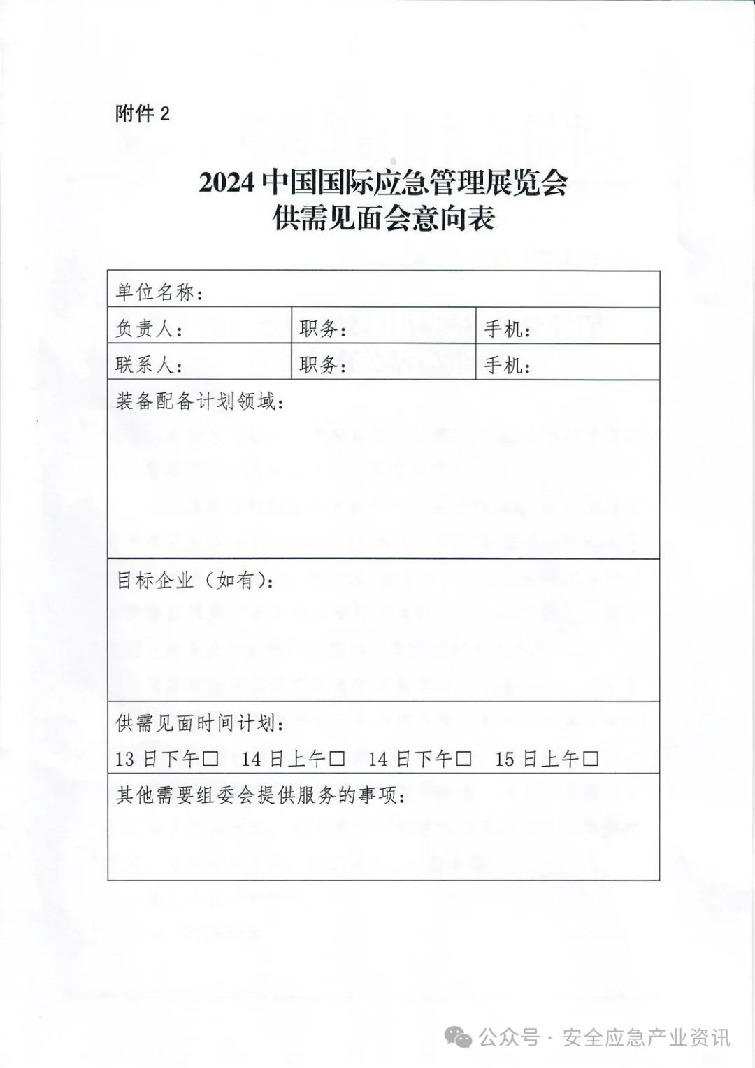 请有意向参加供需见面会的单位填写《供需见面会意向表》(附件2),主办单位将根据装备需求情况遴选相关参展单位,做好供需双方的前期联络和现场的组织协调工作。