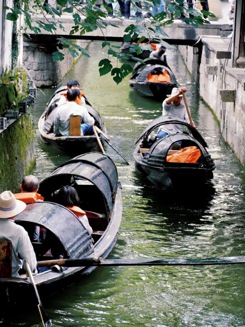 这里的美是“小桥流水人家”的静谧,站在桥上看乌篷船穿桥而过,水波荡漾着两岸白墙黛瓦,随手一拍都是江南水墨画。