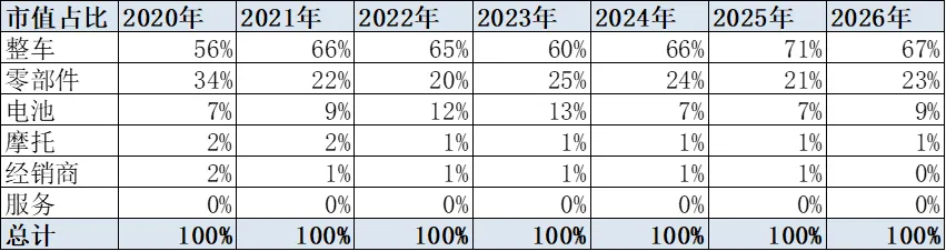 我们把中国车企和零部件企业的A股、港股、美股的三地市值汇总,1月股票市值的汽车零部件占比23%(同期21%)表现较好,整车企业市值占比67%(同期71%)的下降较快,虽然有港股的奇瑞的加入,但市值占比仍是明显下降。