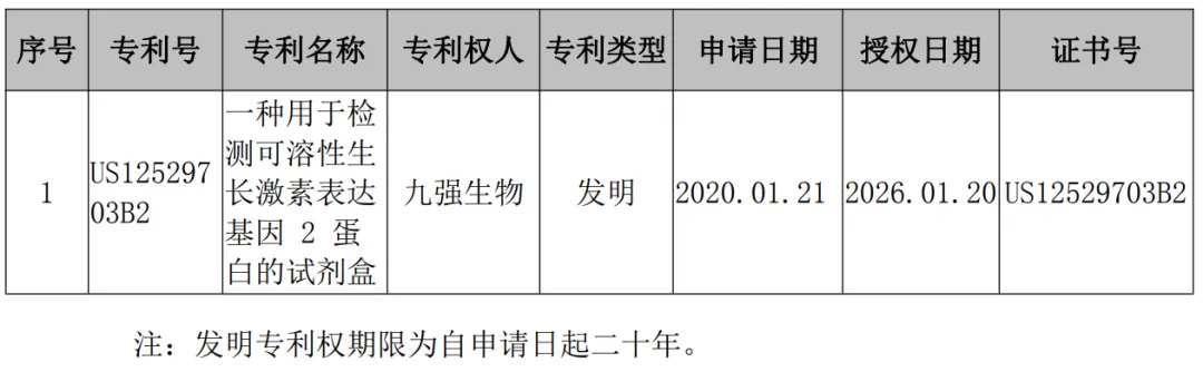 北京九强生物技术股份有限公司(以下简称“九强生物”或“公司” )于近期收到美国专利局颁发的 1 项专利证书,具体情况如下: