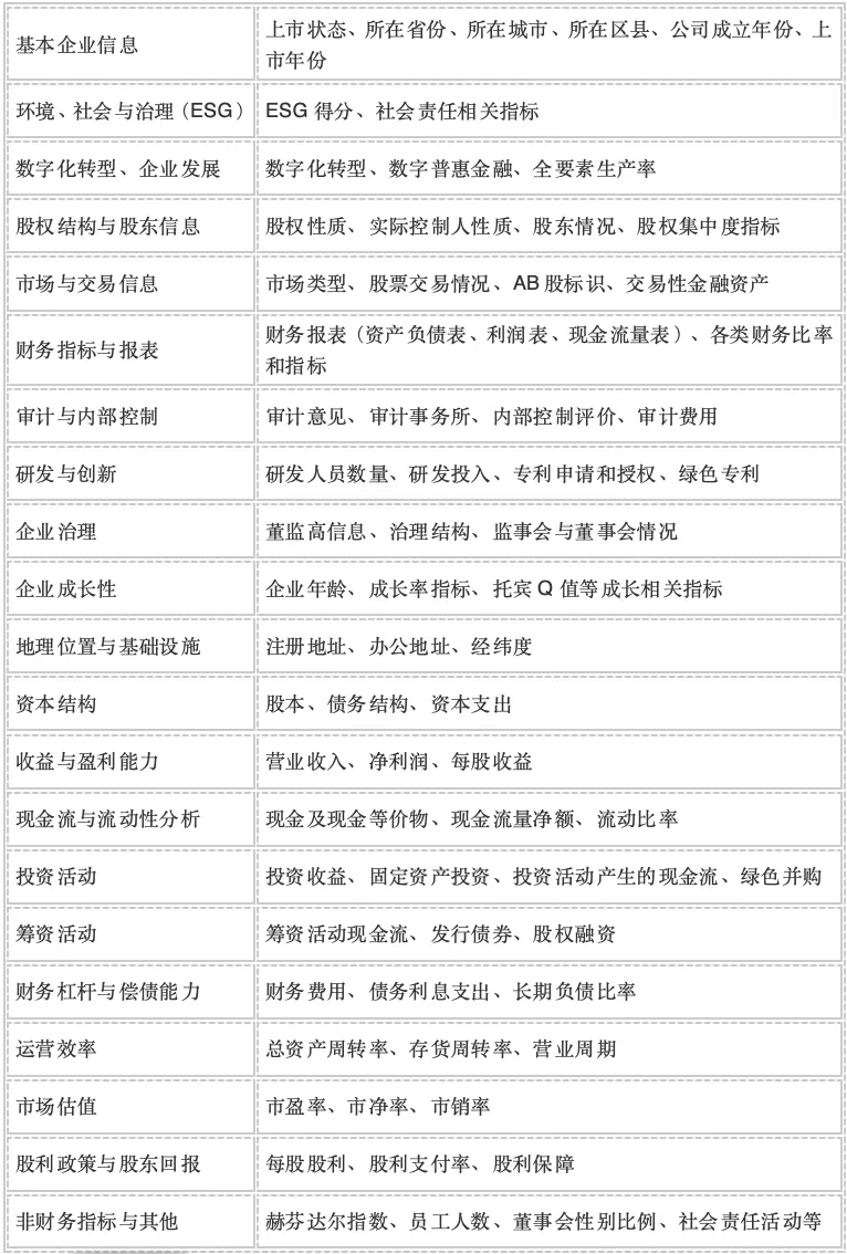 本份数据包括A股上市公司基本信息、财务指标、环境、社会与治理、数字化转型、企业发展、全要素生产率等1413+指标,已整理成面板格式。