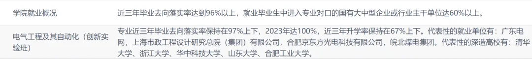 合肥校区:电气工程及其自动化(创新实验班)、电气工程及其自动化、自动化、机器人工程专业 宣城校区:电气工程与智能控制专业 升学与就业: