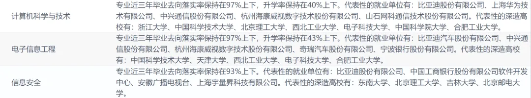 合肥校区:计算机科学与技术、电子信息工程、信息安全 宣城校区:智能科学与技术 升学与就业: