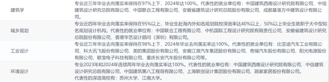 合肥校区:建筑学、城乡规划、工业设计、环境设计 升学与就业: