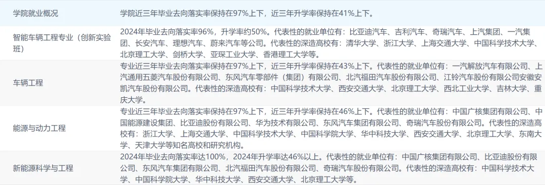 合肥校区:智能车辆工程(创新实验班)、车辆工程、能源与动力工程、新能源科学与工程、交通工程、交通运输 升学与就业: