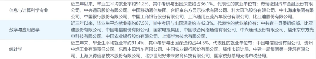 合肥校区:信息与计算科学、数学与应用数学、统计学 升学与就业: