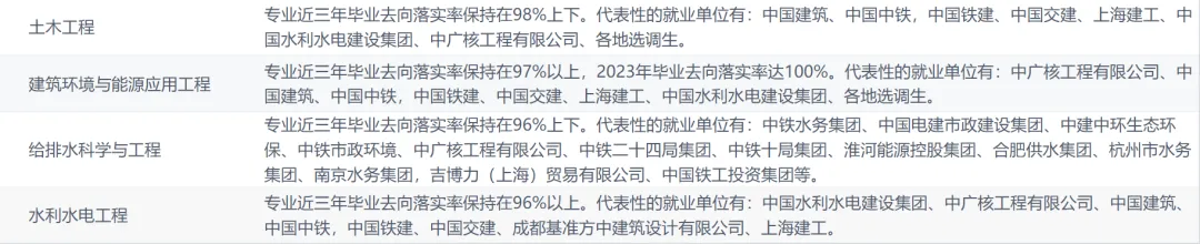 合肥校区:土木工程、给排水科学与工程、建筑环境与能源应用工程、水利水电工程、水文与水资源工程、工程力学、测绘工程、智能建造 宣城校区:土木工程、水利水电工程 升学与就业:
