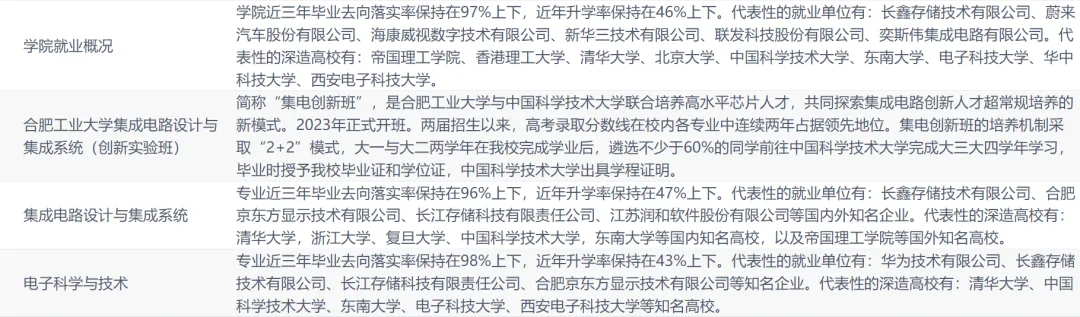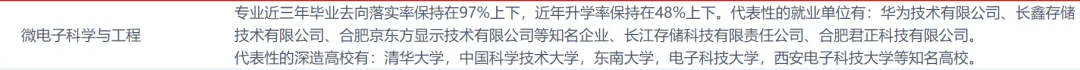 合肥校区:集成电路设计与集成系统(创新实验班)、集成电路设计与集成系统、电子科学与技术、微电子科学与工程 升学与就业: