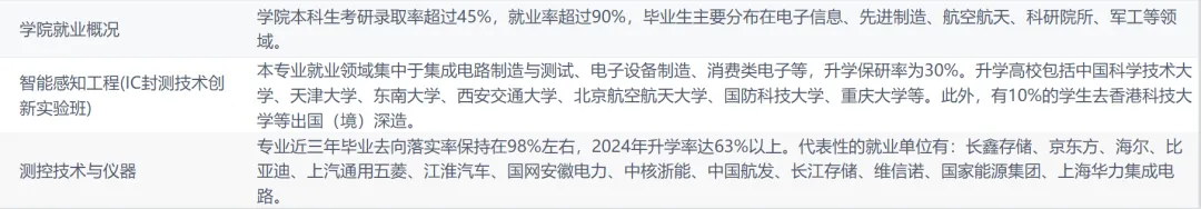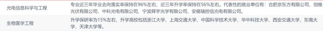 合肥校区:智能感知工程(IC 封测技术创新实验班)、测控技术与仪器、光电信息科学与工程、生物医学工程 升学与就业: