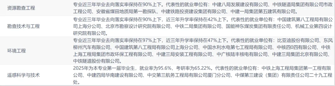 合肥校区:地球信息科学与技术、资源勘查工程、勘查技术与工程、环境工程、遥感科学与技术 宣城校区:环境工程、地球信息科学与技术