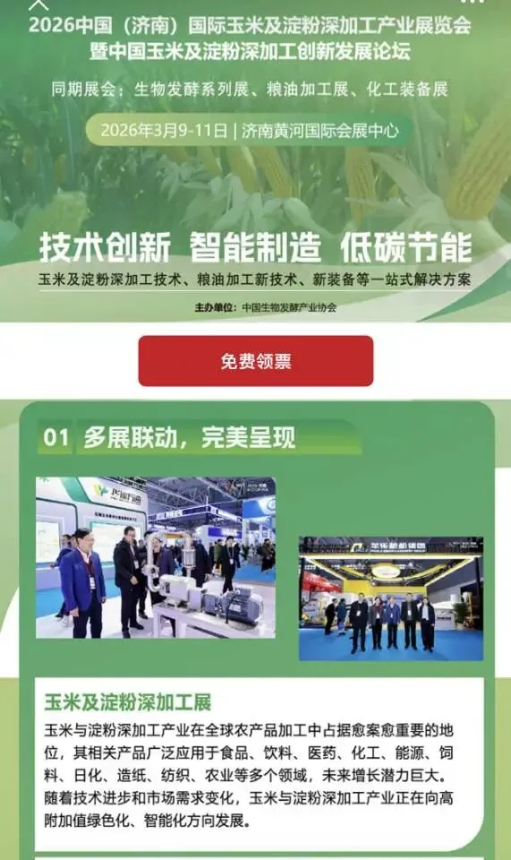 2026济南国际玉米及淀粉深加工产业展会3月9-11日欢迎大家注册参观