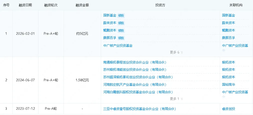 2026年02月01日,氢液化装备领域迎来重磅投融资消息,河南中科清能科技有限公司(下称“河南中科清能”)正式宣布完成约5亿元Pre-A+轮融资,本轮融资阵容堪称豪华,由国新基金、蔚来资本、鲲鹏资本、鼎晖百孚联合领投,中广核产业投资基金、小雨清风基金、河南资产、熔拓资本、荷塘创投、西湖投资、飞图创投等多家机构跟投,多方资本的加持,不仅为公司注入了充足的发展动力,更彰显了资本市场对氢液化、核聚变制冷等低温装备赛道及公司核心实力的高度认可。据悉,本轮募集的资金将全部投入更大级别的液氢系统、国内最大的核聚变制冷系统、国内多个大科学装置关键制冷系统、第三代量子低温感知系统的研发和工程化交付,全力推动核心技术的产业化落地,助力我国未来能源产业高质量发展。作为低温装备领域的新锐力量,河南中科清能成立于2022年6月,由中国广核集团联合合肥综合性国家科学中心能源研究院、河南投资集团等产业链优势资源方共同发起设立,汇聚了资本、技术、产业等多方核心优势,是国内低温赛道中唯一同时具备四大核心要素的科创企业。公司自成立以来,便明确了发展定位,致力于为聚变、绿色氢能、航空航天等前沿领域提供氦液化、氢液化等低温装备及产业链运营服务,核心目标是打破国外技术垄断,为中国未来能源产业发展提供关键支撑,填补国内相关领域的技术空白。公司的快速发展,离不开一支专业且富有实力的核心团队,其中首席执行官潘伟伟更是行业内的资深专家,他曾担任中广核研究所所长,毕业于清华大学,不仅具备坚实的科研基础,更拥有丰富的企业管理和行业深耕经验,早在五年前就敏锐捕捉到氢能产业的创业机遇,率先投身氢液化装备的国产化替代研究。除潘伟伟之外,公司核心团队成员均有着深厚的行业积淀,大多来自中科院相关院所、头部能源企业,曾深度参与EAST、CRAFT、ITER等全球重大聚变项目,在深低温系统设计、工程交付与长期运维等方面拥有丰富经验,核心技术体系源于合肥中科院在磁约束核聚变低温领域的多年积累,为公司的技术研发和产品落地提供了坚实的人才保障。潘伟伟曾表示,中科清能专注于20K以下深低温平台技术,氢能源、聚变、量子、航空航天四条路径,本质上是同一套低温系统能力在不同物理场景下的迁移,公司要做未来能源与算力系统中的冷端基础设施平台。自成立以来,河南中科清能的发展势头迅猛,短短几年时间便实现了技术和业绩的双重突破,而这背后,三次关键的融资历程起到了重要的助推作用。公司的首次融资是2023年7月完成的Pre-A轮融资,由昇辉科技、睿资创投投资,尽管此次融资金额未对外披露,但这笔资金为公司初期的技术研发和产品打磨提供了重要支持,助力公司快速搭建起核心研发团队,推进1吨/天氢液化装备的研发工作,为后续的发展奠定了坚实基础。时隔一年,在2024年6月,公司完成了1.58亿元的Pre-A+轮融资,投资方包括中广核投资、招商致远资本、熔拓资本、高华投资等,此次融资后,公司加速推进技术产业化,同年12月便成功下线5吨/天氢液化装备,技术指标达到国际先进水平,实现了研发下线即商业签约的良好成绩。而此次2026年2月完成的约5亿元Pre-A+轮融资,更是公司发展历程中的重要里程碑,融资规模大幅提升,投资方阵容也更加多元化,涵盖了国资基金、产业资本、创投机构等,将进一步推动公司核心技术的升级迭代和规模化发展,助力公司抢占行业制高点。凭借强大的技术实力和清晰的发展规划,河南中科清能成立短短几年便取得了一系列令人瞩目的成绩:2023年7月,自主研发的1吨/天氢液化装备成功下线,成为国内连续运行时间最长的国产氢液化装备;2025年3月,为长征八号运载火箭提供全部液氢燃料,实现我国航天领域首次规模化使用全国产液氢;2025年10月,研发制造的3kW@4.5K氦制冷机成功投产,成为目前中国核聚变领域已投产的最大制冷功率氦制冷机,为CRAFT核聚变大科学装置提供关键支撑;同时,公司还成功出海,与CMMZE集团签订2吨/天氢液化装备销售合同,实现我国氢液化装备反向出口欧洲的突破。此外,公司还启动了35吨/天级氢液化装备的研发工作,预计明年四季度下线交付,届时将成为全球单机产能最大的氢液化装备。当前,在“双碳”战略深入推进的背景下,绿色氢能、核聚变、量子计算等前沿领域迎来爆发式发展机遇,而低温装备作为这些领域的核心基础设施,市场需求持续扩大,但长期以来,相关核心技术和装备被美国、德国、法国等国际巨头垄断,国产化替代迫在眉睫。河南中科清能的崛起,不仅打破了国外技术封锁,更推动了我国低温装备产业的自主发展,此次约5亿元Pre-A+轮融资的完成,将为公司的发展注入新的活力。未来,公司将持续聚焦核心技术研发,加快推进各类低温系统的工程化交付,不断完善产业链布局,致力于构建大规模、长距离、低成本、高安全的氢能供应链,力争成为国内一流、具备国际影响力的绿氢能源及低温技术供应商,成为超低温行业的“造风者”,为我国能源安全和产业升级贡献重要力量。