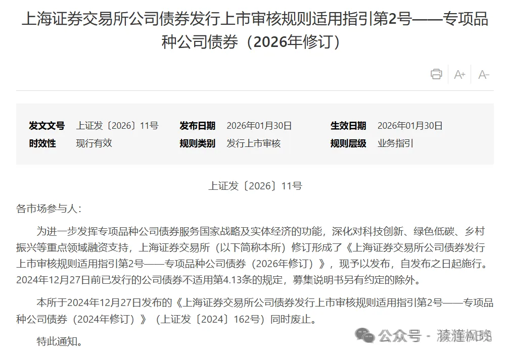 上交所公司债券发行上市审核规则适用指引第2号-专项品种公司债券(2026年修订)
