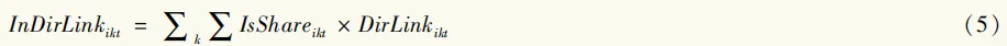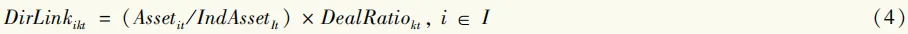 DirLinkikt表示企业与其直接交易伙伴的信息技术溢出程度。其中,Assetit是企业资产,IndAssetIt是企业i所属行业I的资产,企业的行业资产占比反映了企业在行业内的影响力。DealRatiokt是客户k向企业i的采购比例。进一步地,计算上市公司i获得的间接信息技术溢出强度: