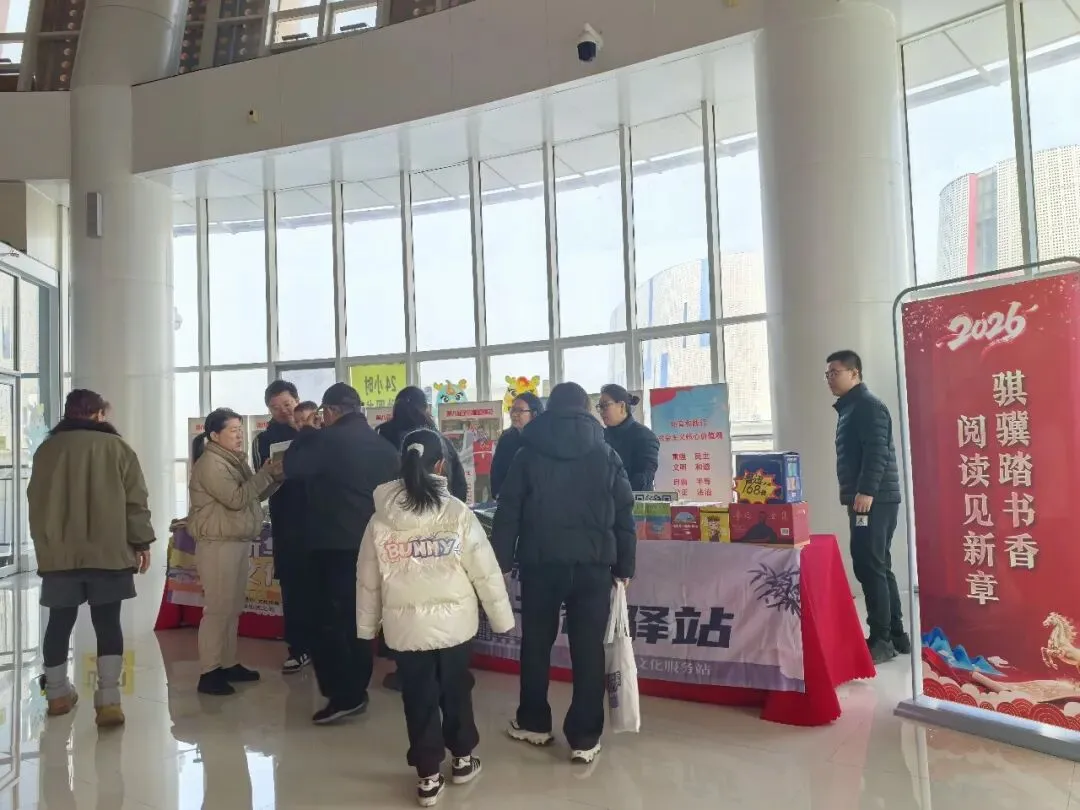 1月31日,“黄河大集”之寒假新春书籍展销会在东营市图书馆举办。本次活动以“骐骥踏书香·阅读见新章”为主题,由我馆联合新华书店共同策划推出,旨在通过丰富多彩的文化惠民活动,为市民读者营造浓厚的节日阅读氛围。