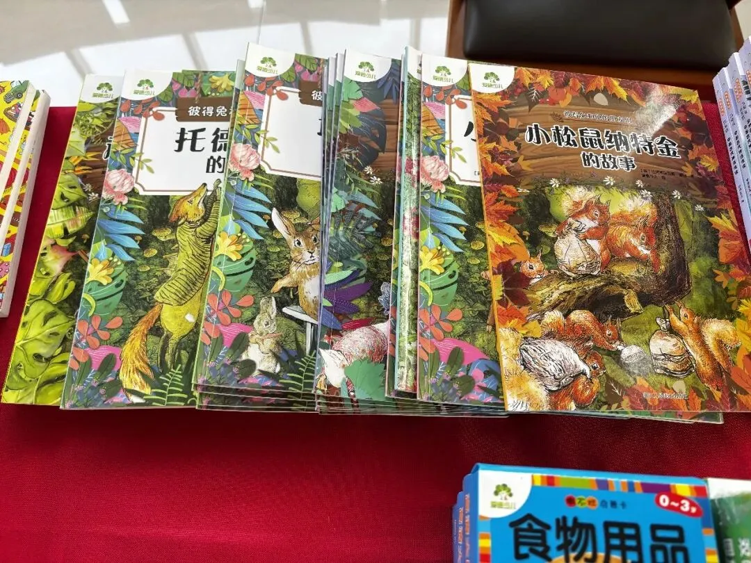 现场精心设置了“城市文创产品专区”、“儿童绘本专区”等主题书展,吸引不少读者驻足浏览。现场工作人员如数家珍地讲解着展台上的图书和文创产品,从帆布包上慵懒猫咪的憨态可掬到《彼得兔和他的朋友们》系列丛书的童趣盎然,时光在书香的氛围里静静流淌。