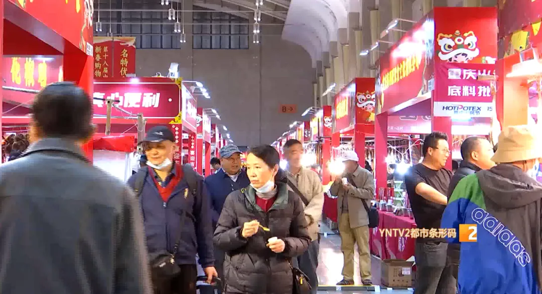 昆明新春购物博览会现场让人提前感受到马年春节的氛围。各种年货铺满货架,不但种类丰富,价格也实惠,前来采购年货的市民往来不断,处处洋溢着浓浓的烟火气。