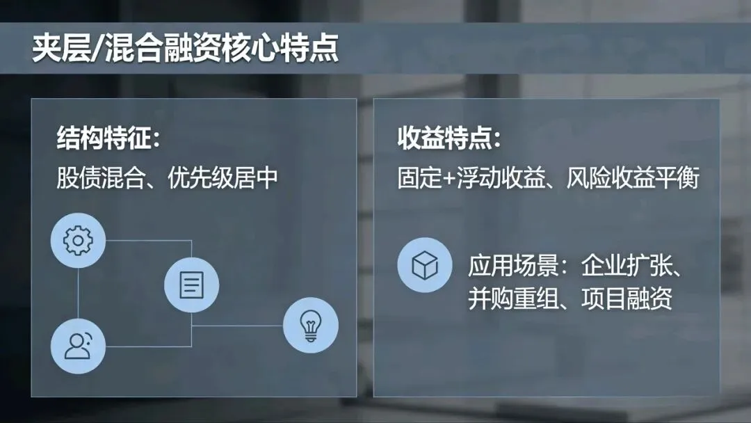介于债权和股权之间的夹层/混合融资,是“进可攻退可守”的选择。适合既想融资,又不想过度稀释股权、也不愿承担高杠杆的企业。可转债、可交债、优先股等都属此类,进可转股共享成长收益,退可还本付息保障资金安全,条款灵活但设计复杂,明股实债更要注意合规与税务问题。