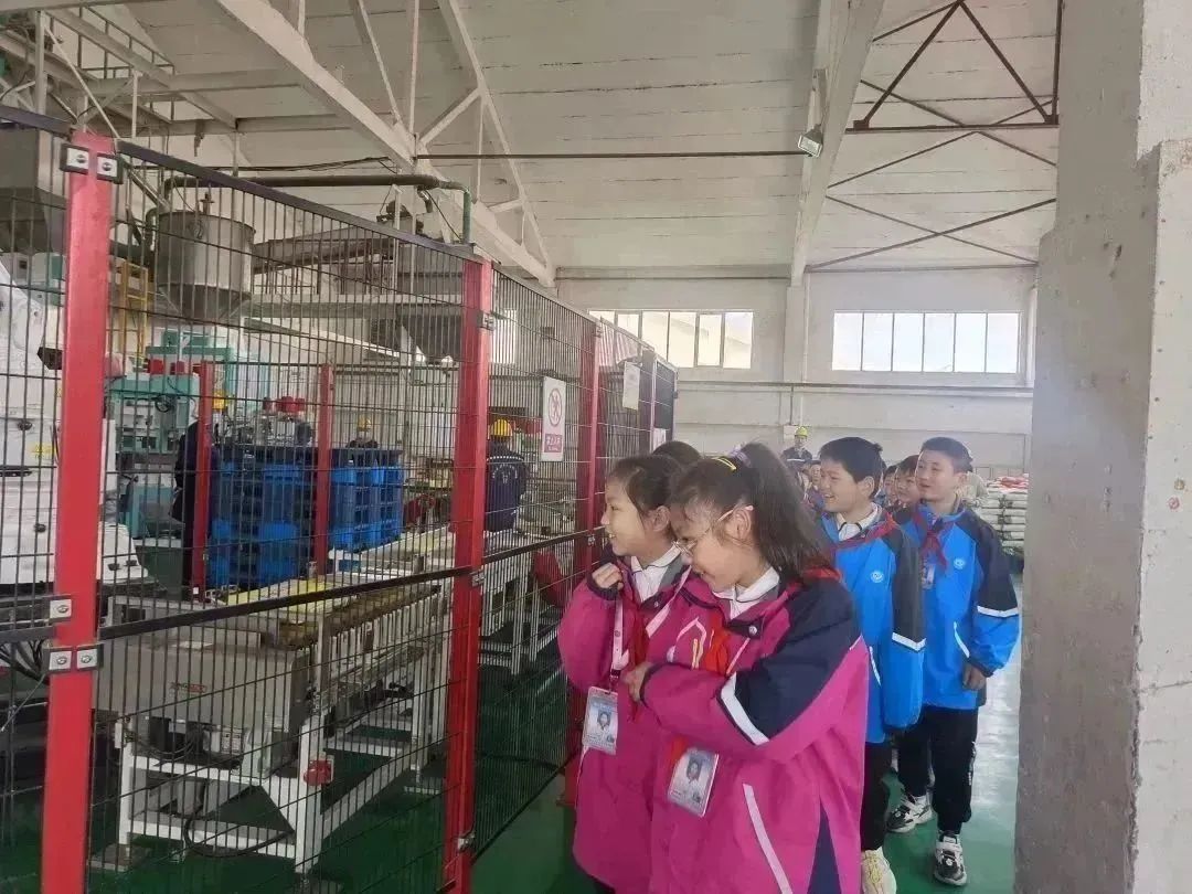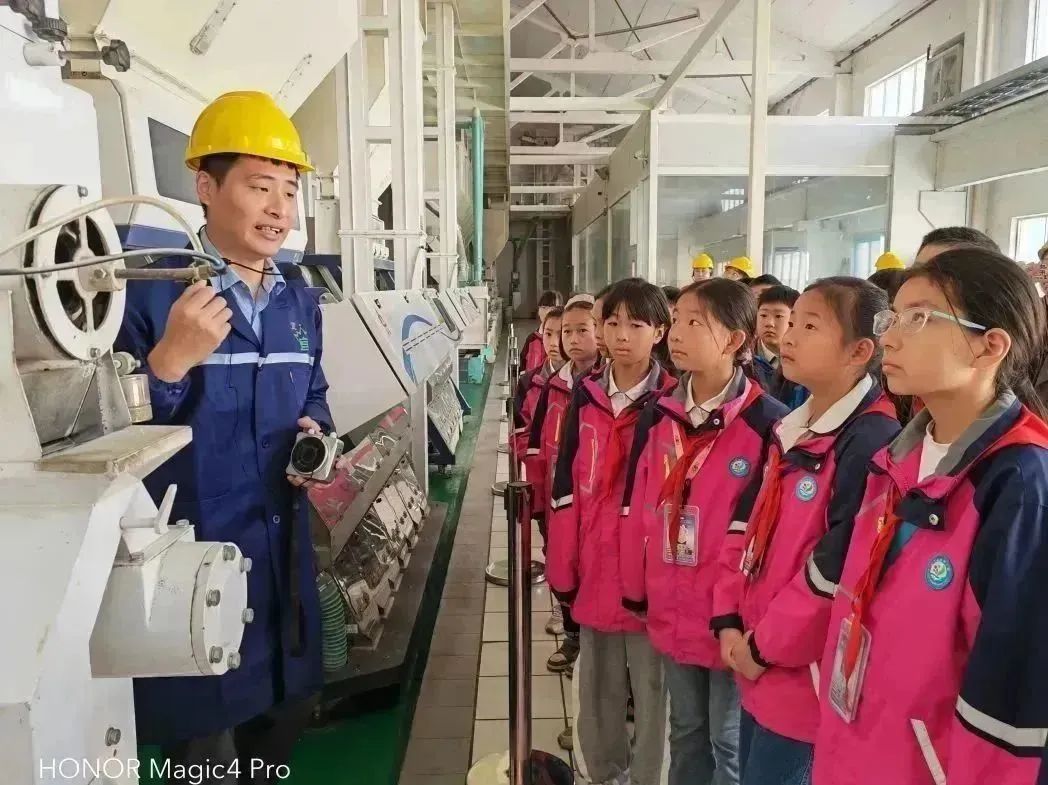 在百粮农业总经理路阳的讲解下,孩子们依次参观充氮低温粮仓、大米加工车间、包装车间等,了解低温充氮技术保存粮食原理和方法;现场观摩加工车间去石机、砻谷机、碾米机、白米分级筛、色选机、抛光机等设备作业场景,加深对稻米加工全产业链条认知。