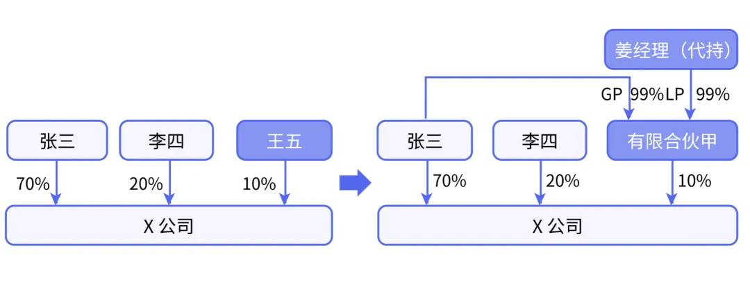 因此,为员工期权计划预留出来的股权在员工还没有行权时,需要有一个实体先代为持有,本案例中该代持人为公司财务经理姜先生。