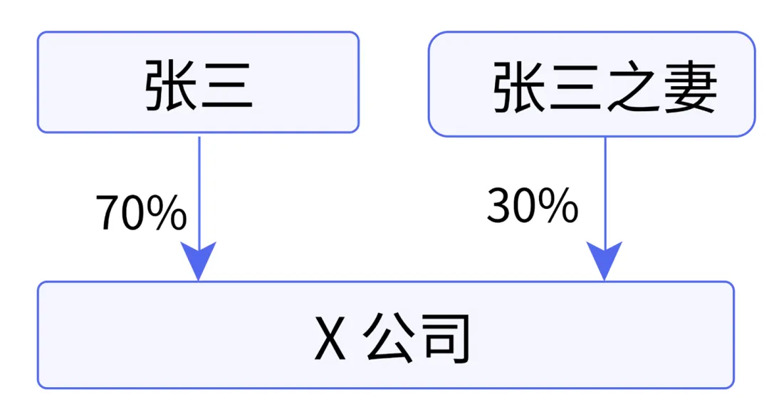 这个阶段是公司的初创期,股权架构为张氏夫妻直接持股,注册资本100万元,全部实缴。张三持股70%,张三之妻持股30%(见图1)。