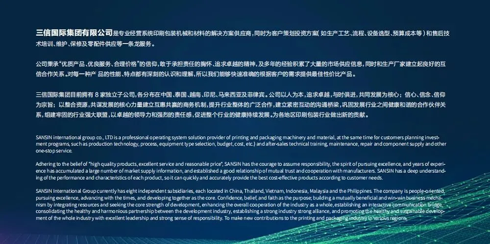 孟加拉国作为南亚地区经济发展迅速的国家之一,其制造业,特别是纺织服装配套的包装、印刷以及快速发展的塑料制品行业,对先进设备与技术的需求日益旺盛。三信国际集团此次参展,正是看中了这一市场的巨大潜力,旨在通过这一高效平台,近距离接触当地及周边地区的潜在客户,深入了解市场需求,进一步提升“三信”品牌在当地的知名度与影响力。
