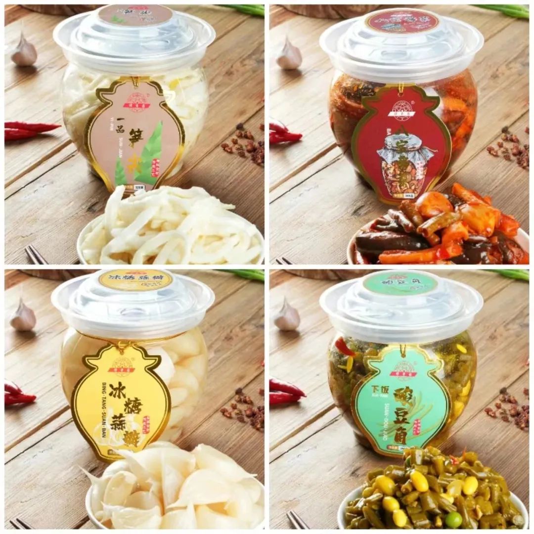 休闲定量坛装系列产品:冰糖蒜瓣、腊八蒜、辣白菜、油焖港椒、油焖萝卜干、八宝酱菜、一品榨菜丝、一品孙尖、一品脆黄瓜、一品酱黄瓜条、香辣萝卜干、麻仁金丝、梅菜笋丝、鬼子姜、酱黄瓜条、下饭酸豆角、红糖爽口蒜,可定制款产品!