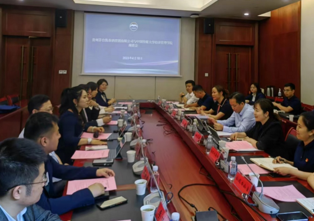 4月18日,酱香酒公司与中国传媒大学经济管理学院在会议中心举行座谈会,中国传媒大学经济与管理学院党委书记王晓丽,酱香酒公司党委书记、董事长张旭出席会议。酱香酒公司党委副书记、纪委书记、工会主席付月秋主持会议。