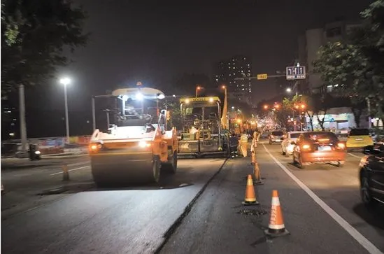 白沙大道西主道开始沥青施工 首次采用热再生技术修补路面