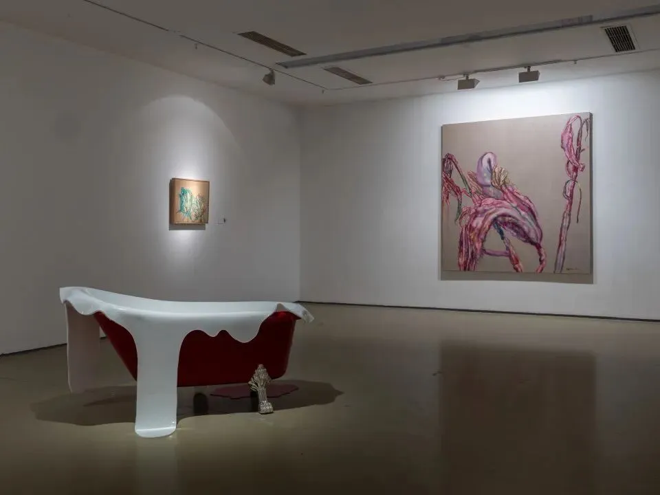 2025年9月,迪迪埃在蔡锦空间看过蔡锦个展后,便确定将她的作品放入展览中。中西方对于色彩不同的理解,在蔡锦的作品中展现得淋漓尽致。艺术家标志性的红色,在西方人眼中或许意味着血与肉,而在艺术家看来更像是生命的能量。