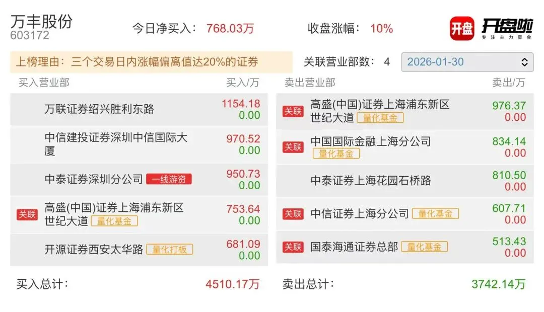 2、万丰股份:染料市场涨价不止,通道资金强势顶板