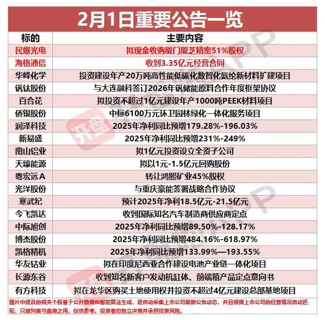 1、民爆光电:拟现金收购厦门厦芝精密51%股权。