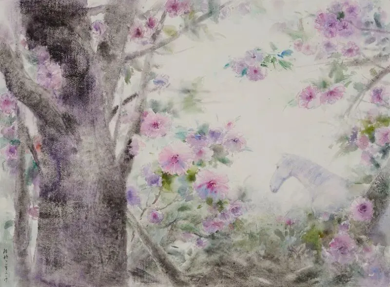 《玉骝踏春》水彩52X32cm