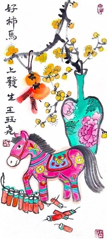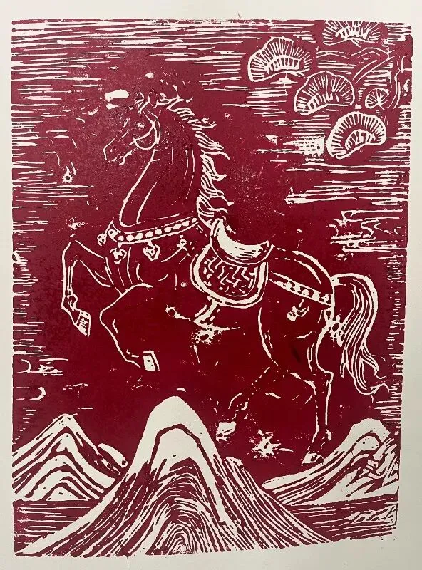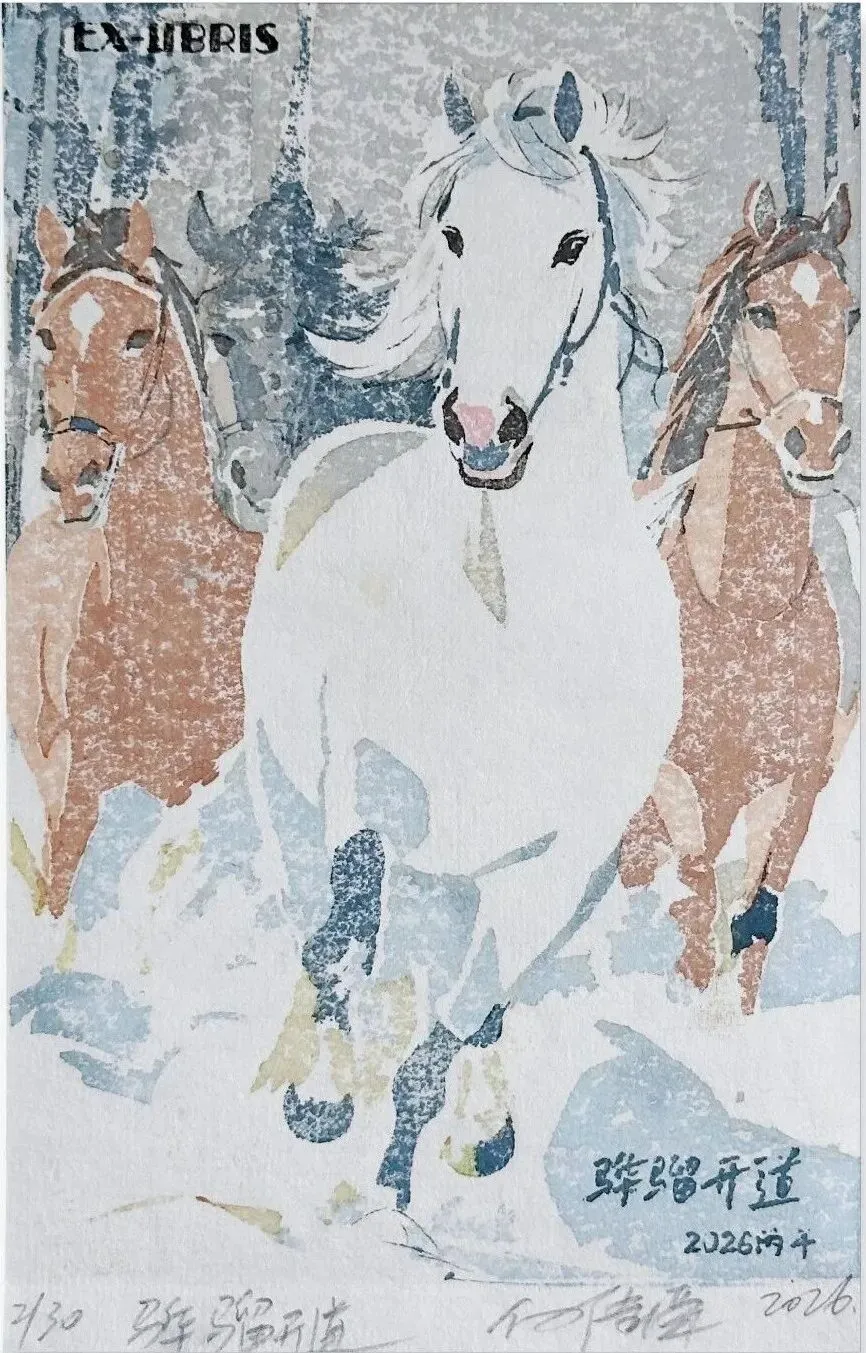《马跃新禧》版画23x32cm