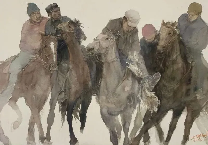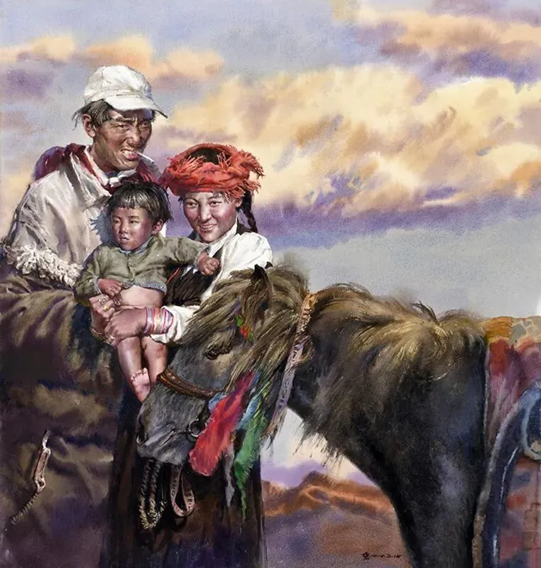 《马上人家》水彩150x157cm