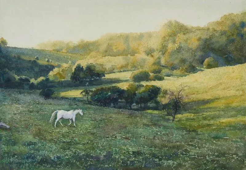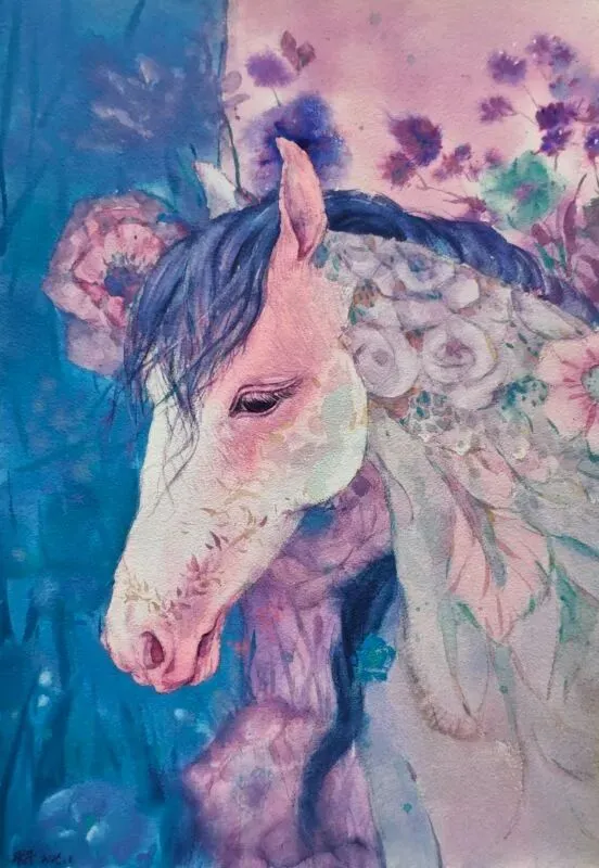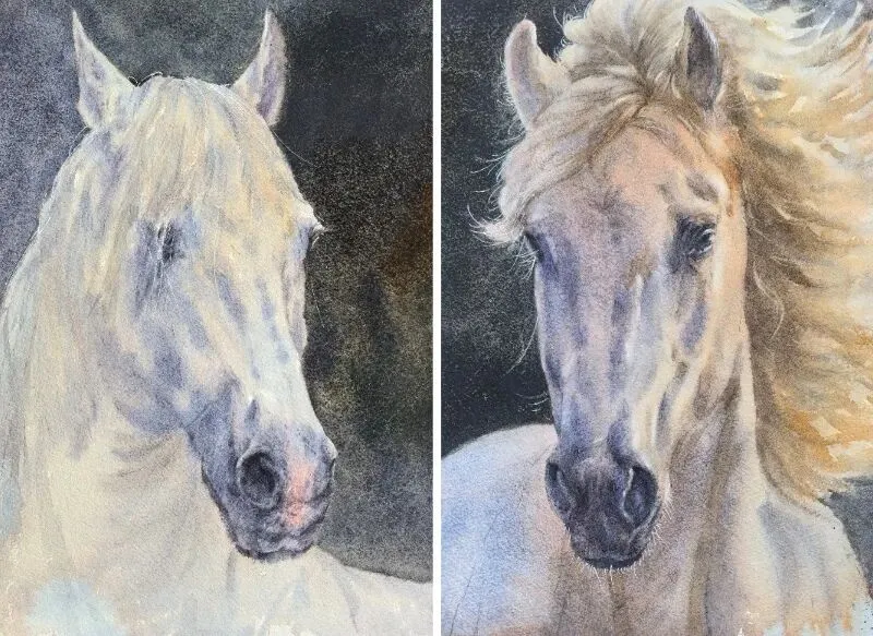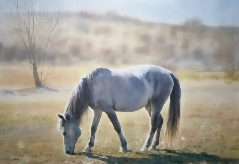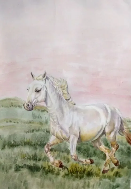 《白马》水彩 40X50cm