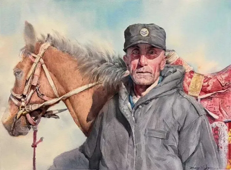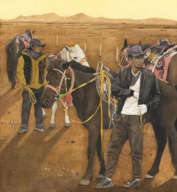 《驭马者》水彩画98.5×90cm