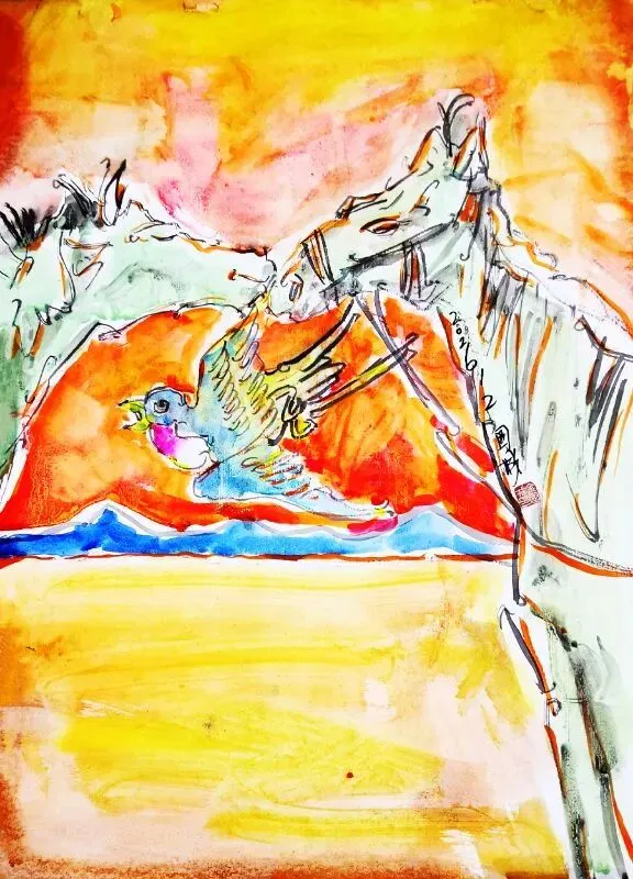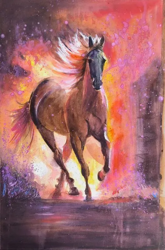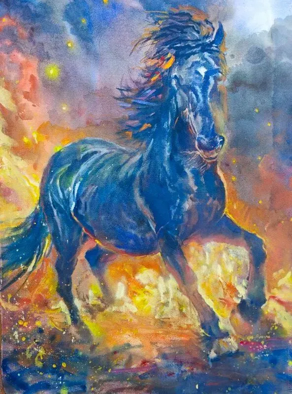 《马到》水彩画54cm×39cm