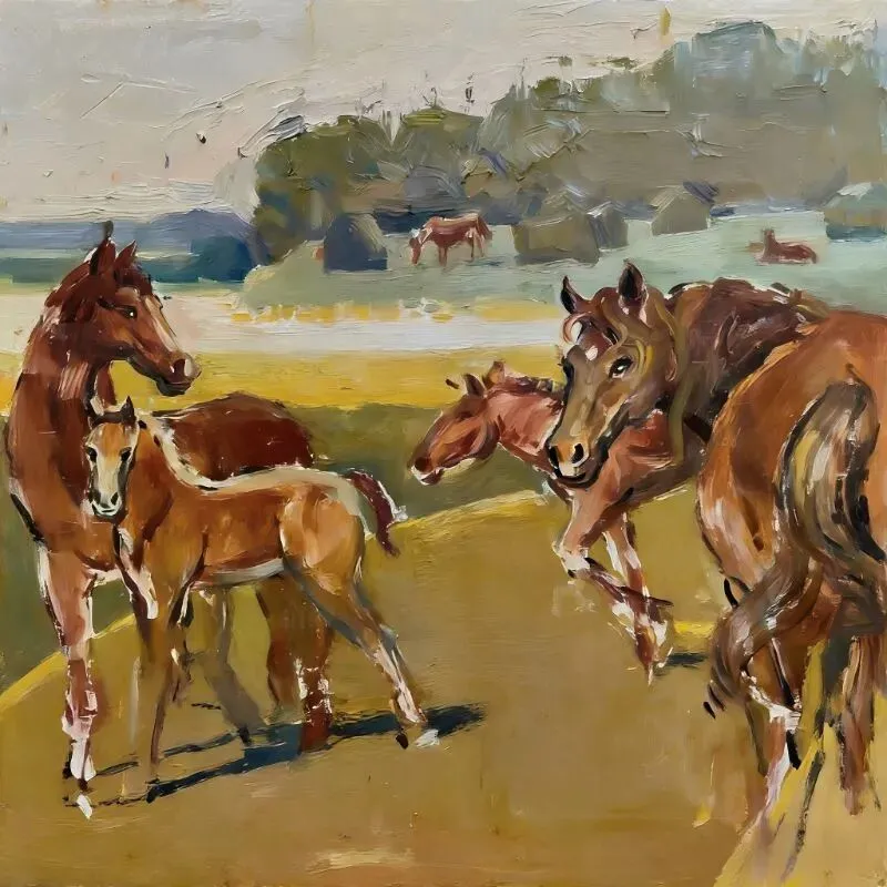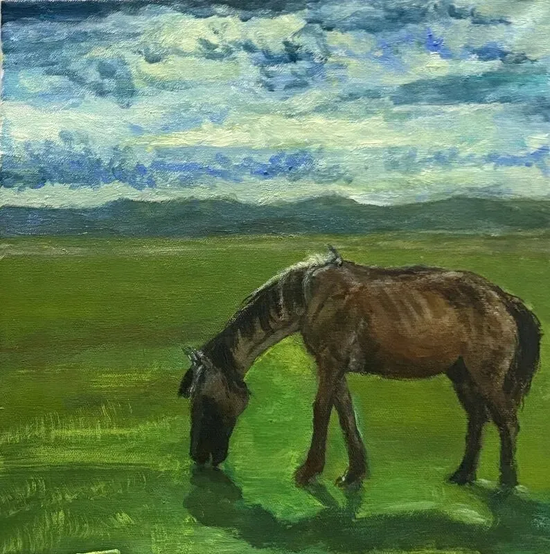 《浅草漫马蹄》丙烯20x20cm